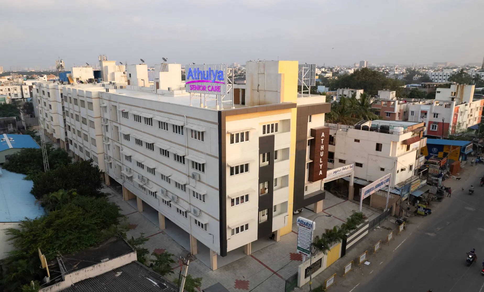 Athulya Senior Care in Maduravoyal offers a premium retirement experience, allowing seniors to escape the hustle of city life and enjoy their golden years in peace and serenity. Strategically located within the city yet in a tranquil setting, it provides the perfect balance for graceful aging. With easy access to essential services, our facility is designed to cater to every need of our residents, from basic comforts to luxury amenities. Athulya in Maduravoyal stands out for its luxurious living options and senior-friendly infrastructure, all aimed at ensuring the safety, comfort, and well-being of our valued residents.